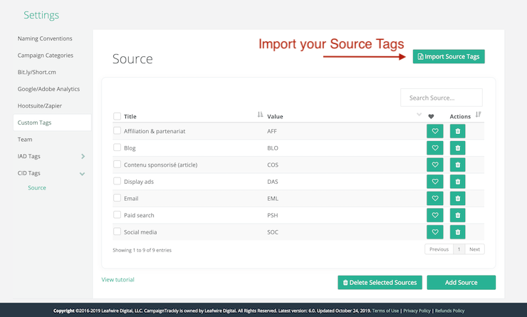 - Don’t forget to setup your Sources in the Source page dedicated for this function.
