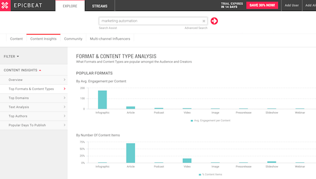 - See in one click most popular content (titles and links), a list of all the top writers, as well as top content formats preferred by your audience.