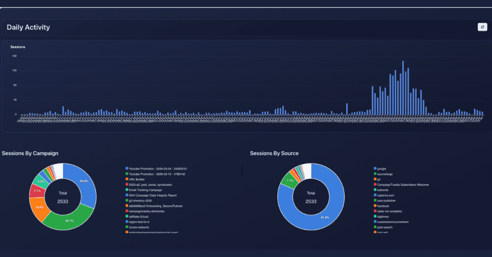 Princeton, NJ — March 2026 — CampaignTrackly today announced the launch of its next-generation GA4 Performance Dashboards, a fully redesigned reporting experience that transforms raw Google Analytics 4 data into structured campaign intelligence.